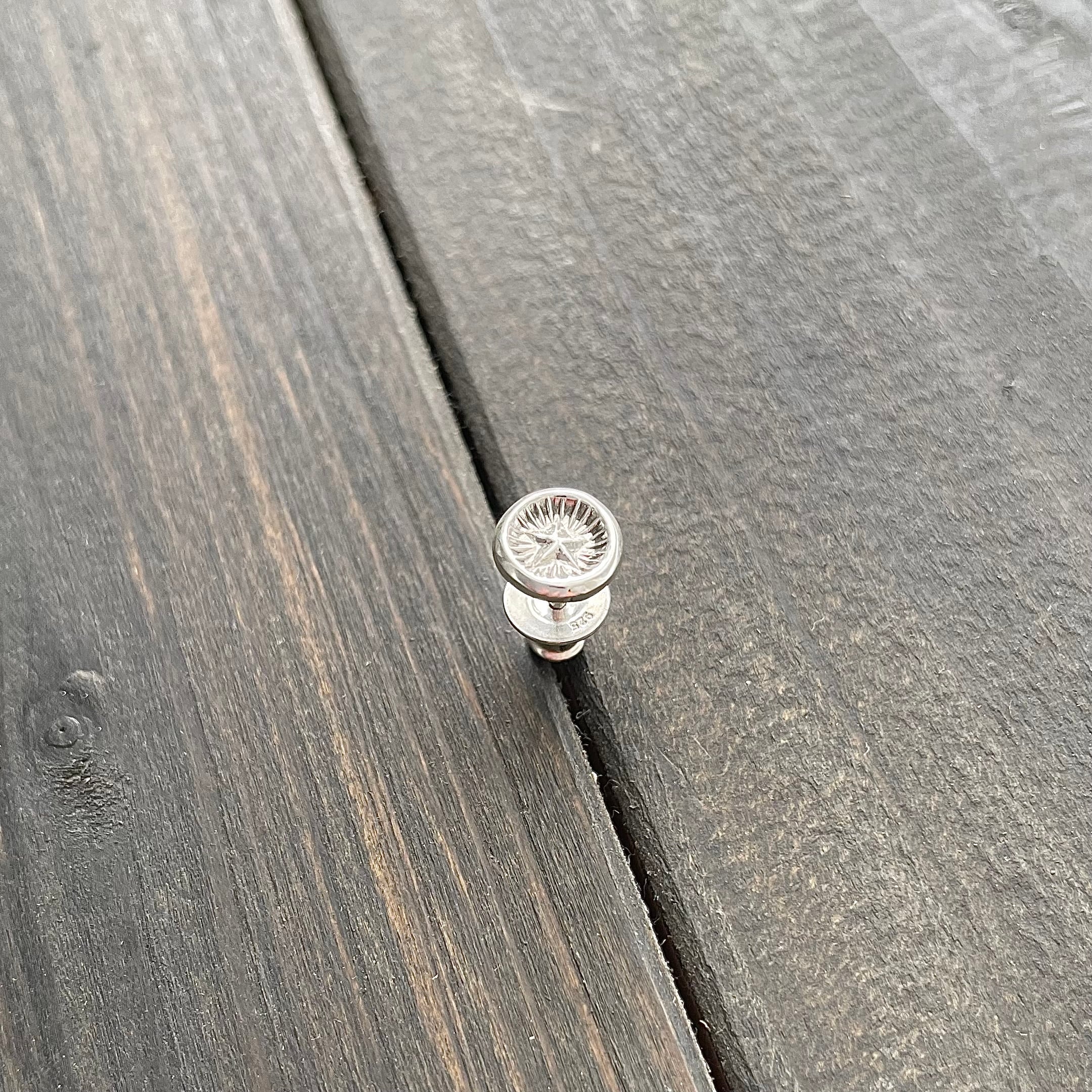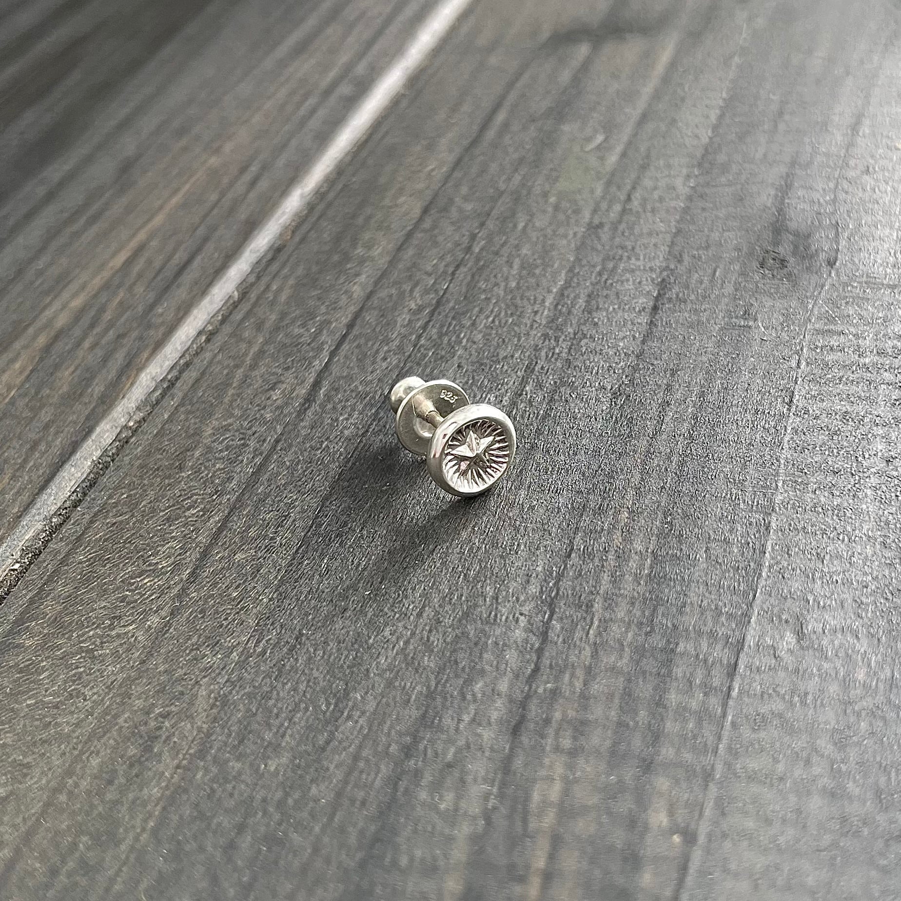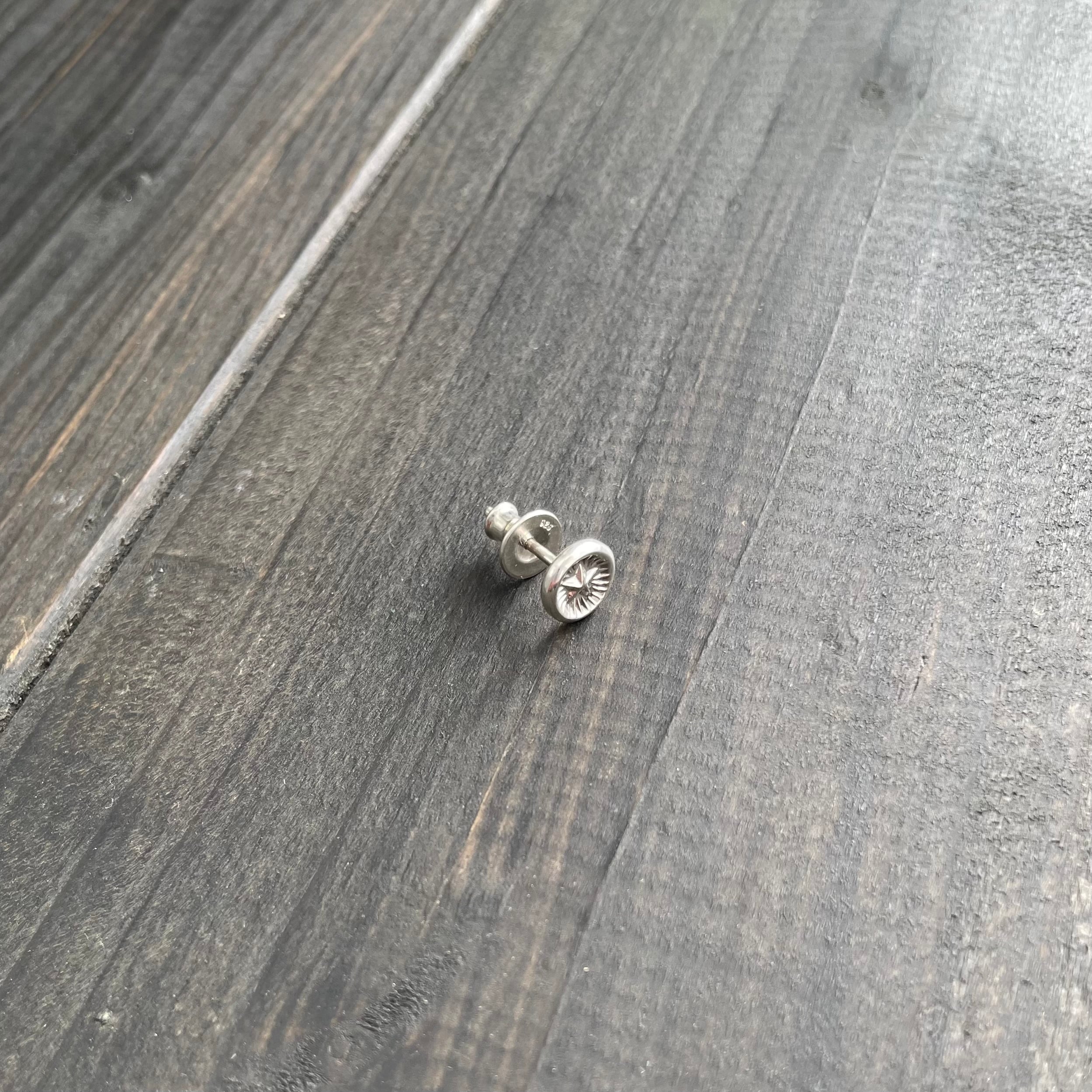 中央に星状のエンボスのデザインのシルバー925製スターポイントピアスです。