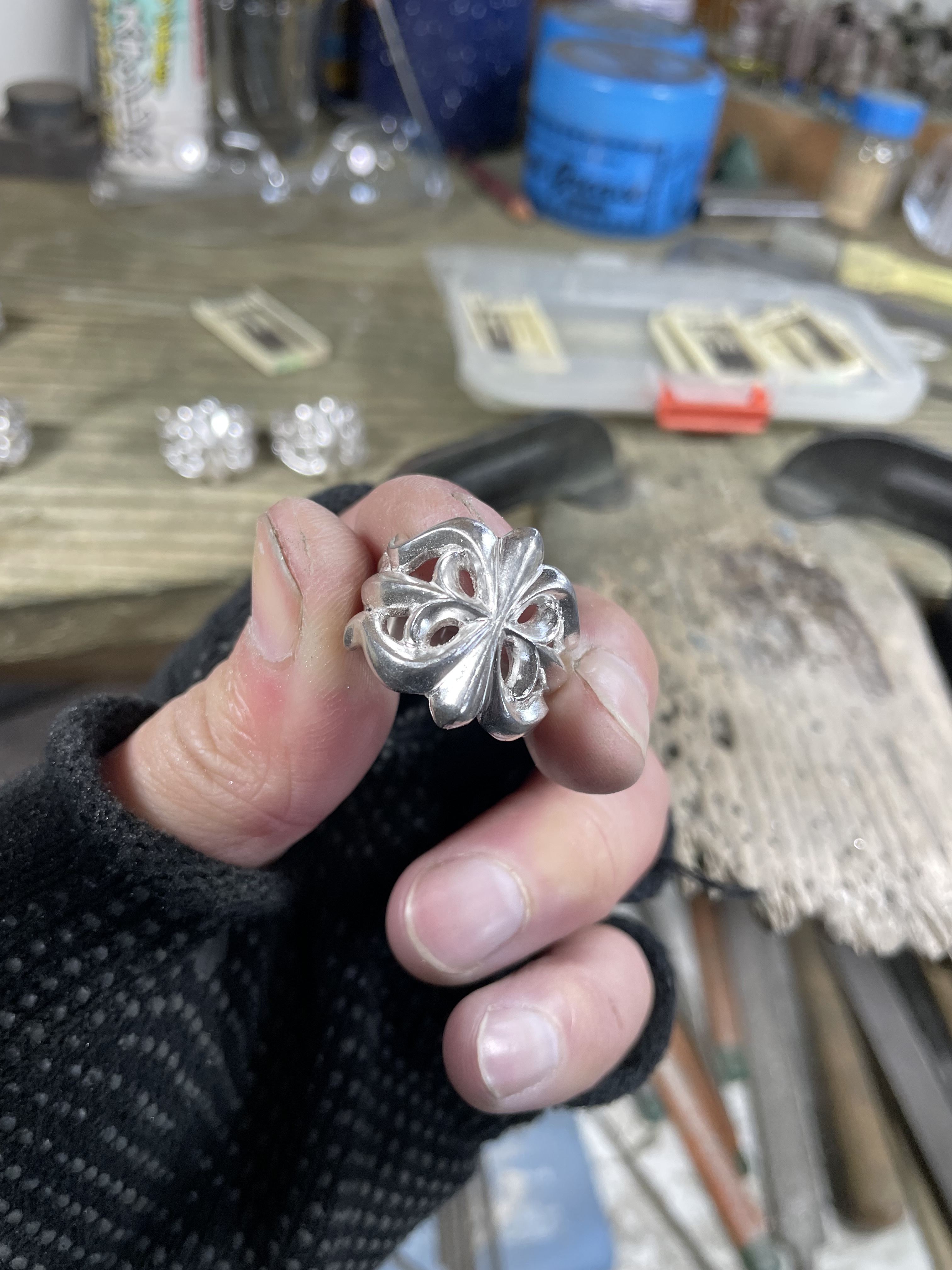 インディアンジュエリーではボウガードなどに用いられる造形をリングにしたSv925製リベルリングです。