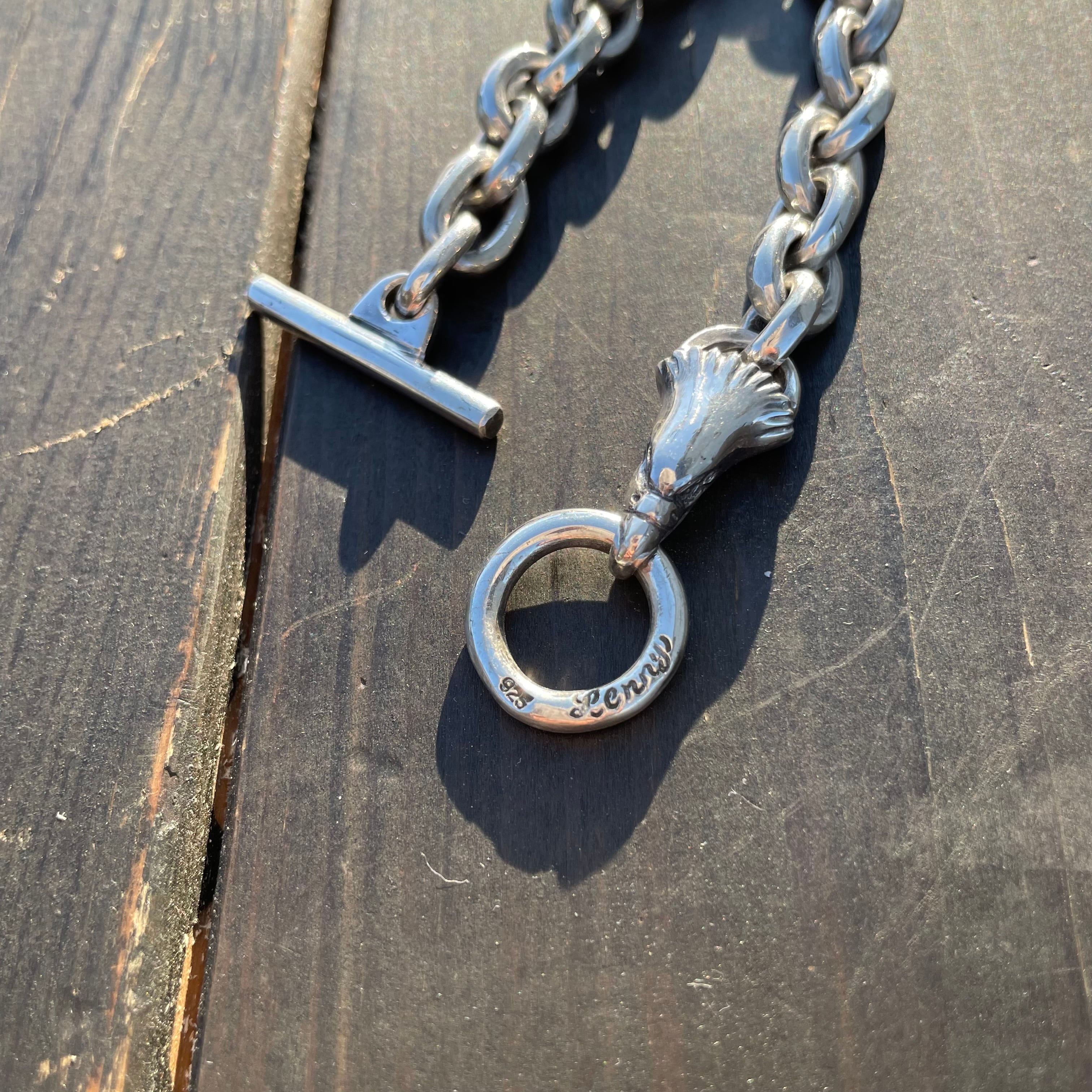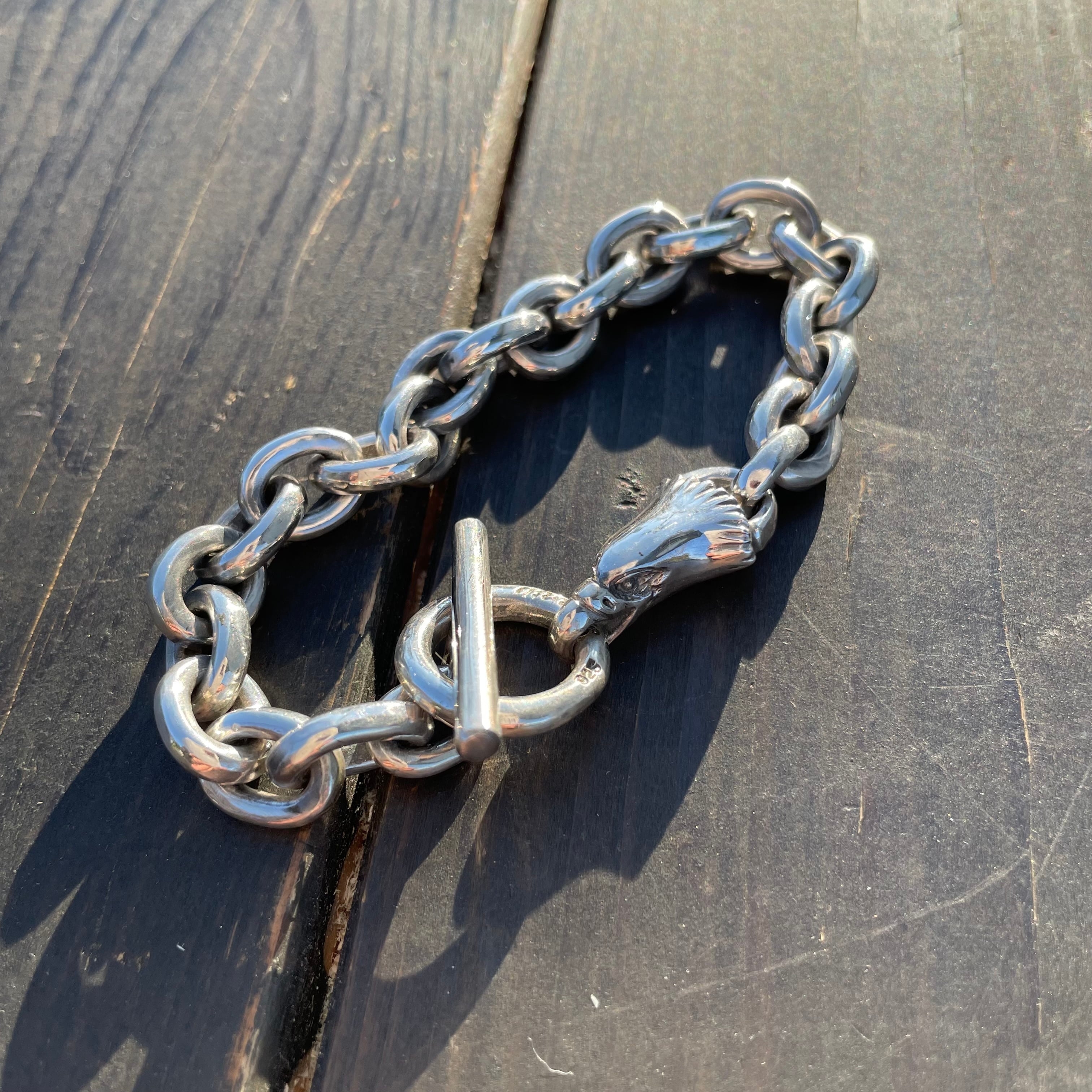 イーグルヘッドのTバージョイントを用いたSv925製チェーンブレスレットです。