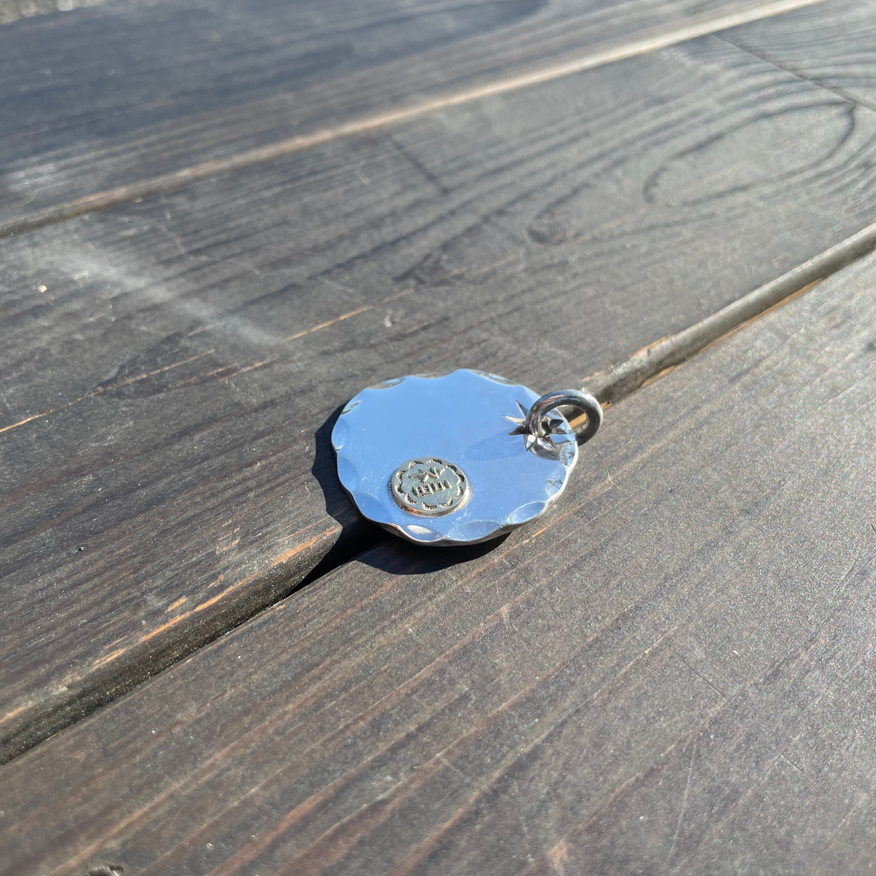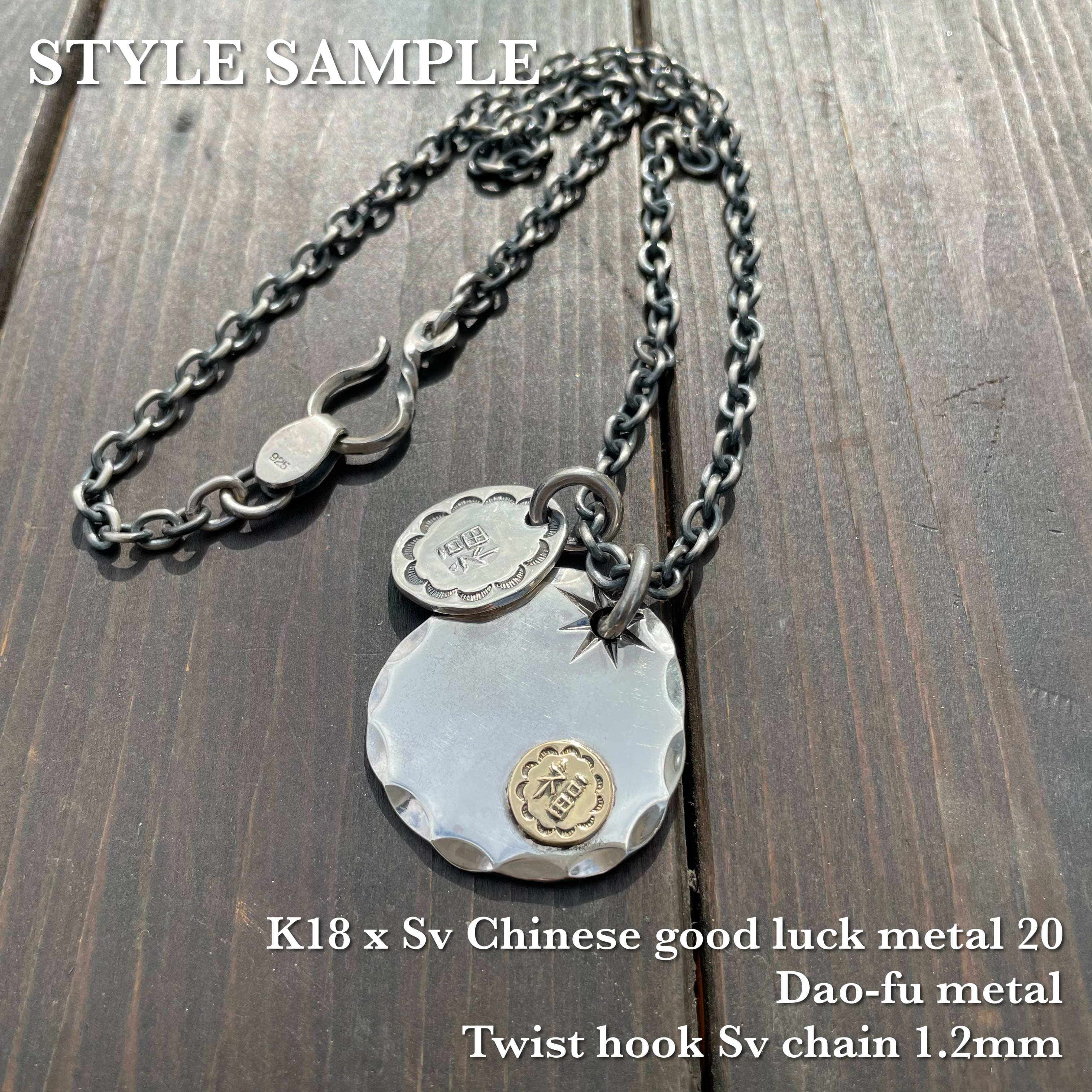 エンボス加工の”福”にスタンプワークを合わせたk18メタルを、大サイズのSv925メタルにセットしました。